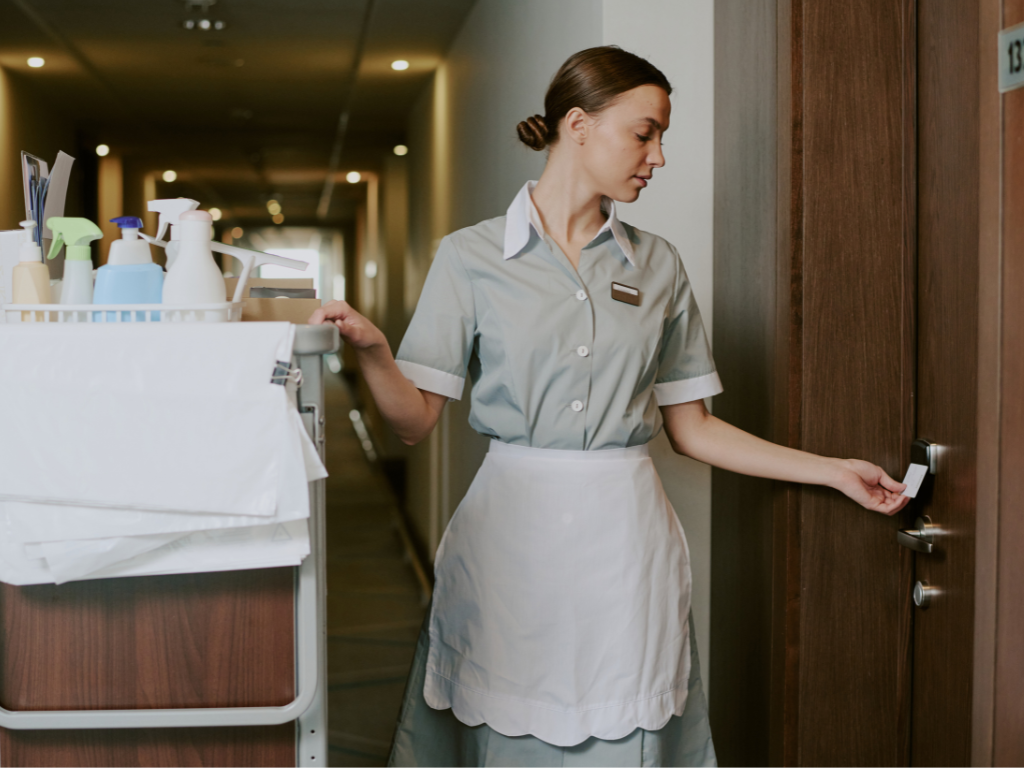 Limpieza y preparación de habitaciones según los estándares del hotel.