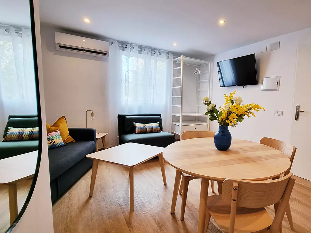 Estudis 2/3 : Capacitat màxima per a 3 persones. Es tracta d'un sol espai on trobaràs un sofà llit individual i un sofà llit doble al saló – menjador, a més d'un bany completament equipat i cuina.