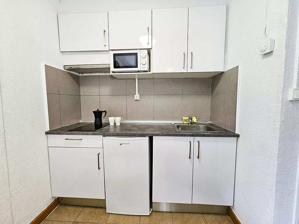 Estudis 2/4 : Capacitat màxima per a 4 persones. Es tracta d'un mateix espai on hi ha un llit de matrimoni, un sofà llit al saló menjador, a més d'una cuina i un bany completament equipats.