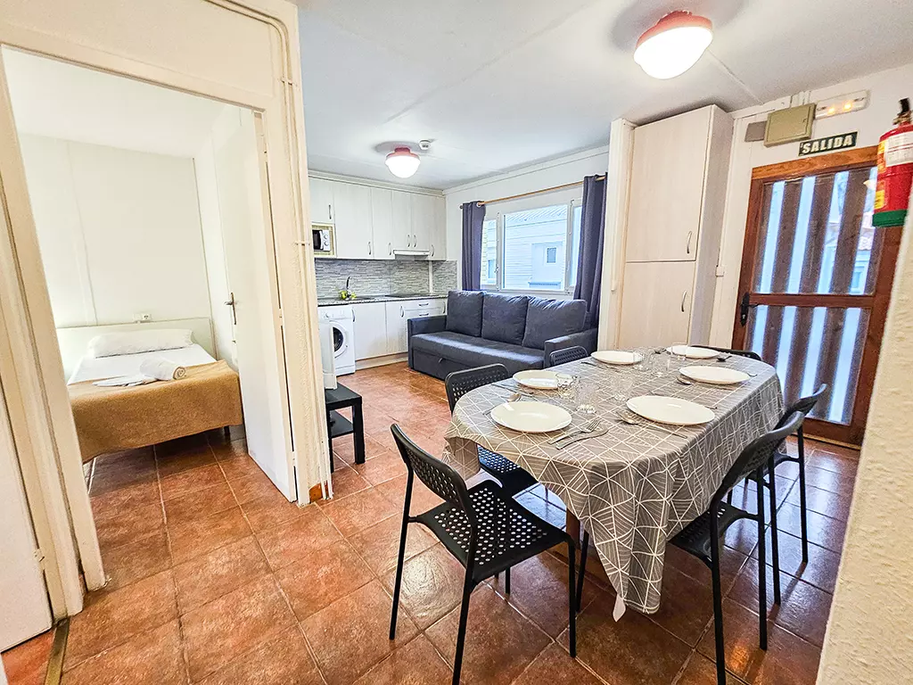 Apartaments 2/4 : Capacitat màxima per a 4 persones. Compten amb una habitació amb llit de matrimoni o dos llits individuals, sofà llit doble al saló i una cuina i bany completament equipats.