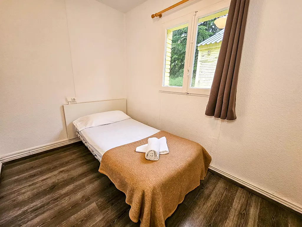 Xalet 10/12 : Capacitat màxima per a 10 persones. Disposen de cinc habitacions, quatre amb dos llits individuals i una altra amb un llit de matrimoni, a més d'un sofà llit doble al saló menjador. Així com una cuina i dos banys tots dos amb banyera.