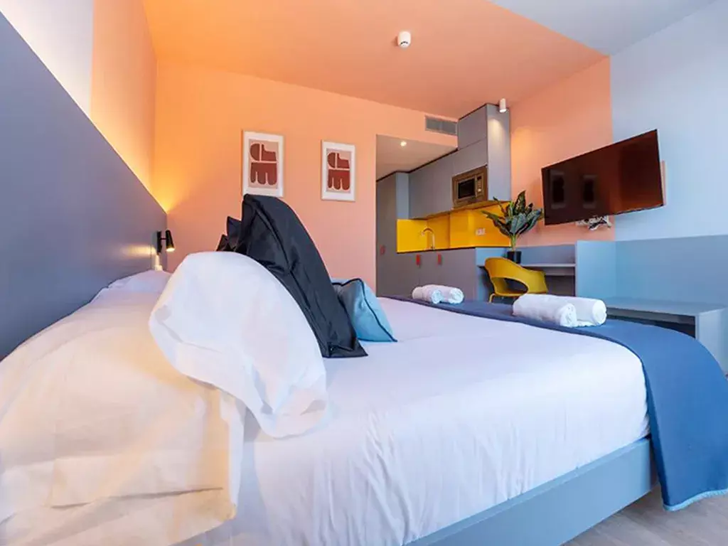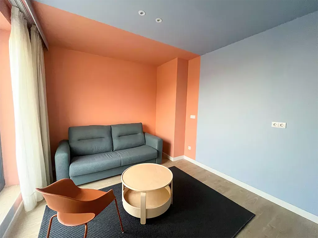 One-bedroom unit with sofa bed: Maximum capacity for 4 people. Features a king-size bed and a double sofa bed in the living room.