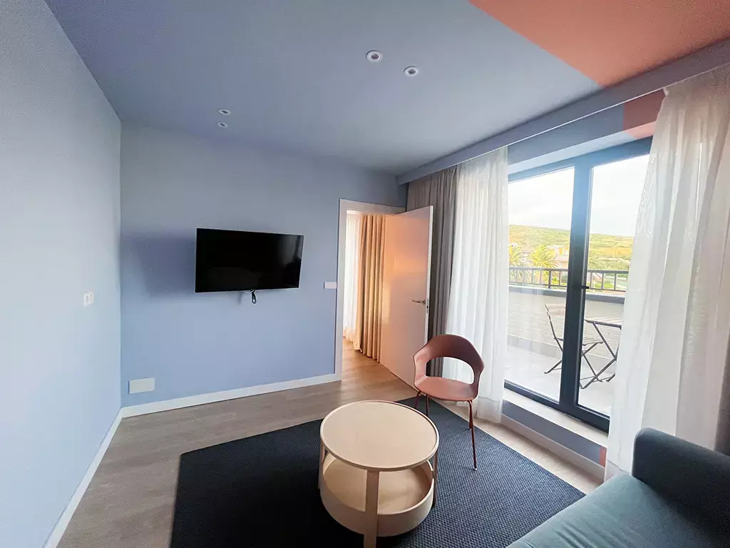 One-bedroom accommodation with balcony and sea view: Maximum capacity for 4 people. It has a king-size double bed and a double sofa bed in the living room.