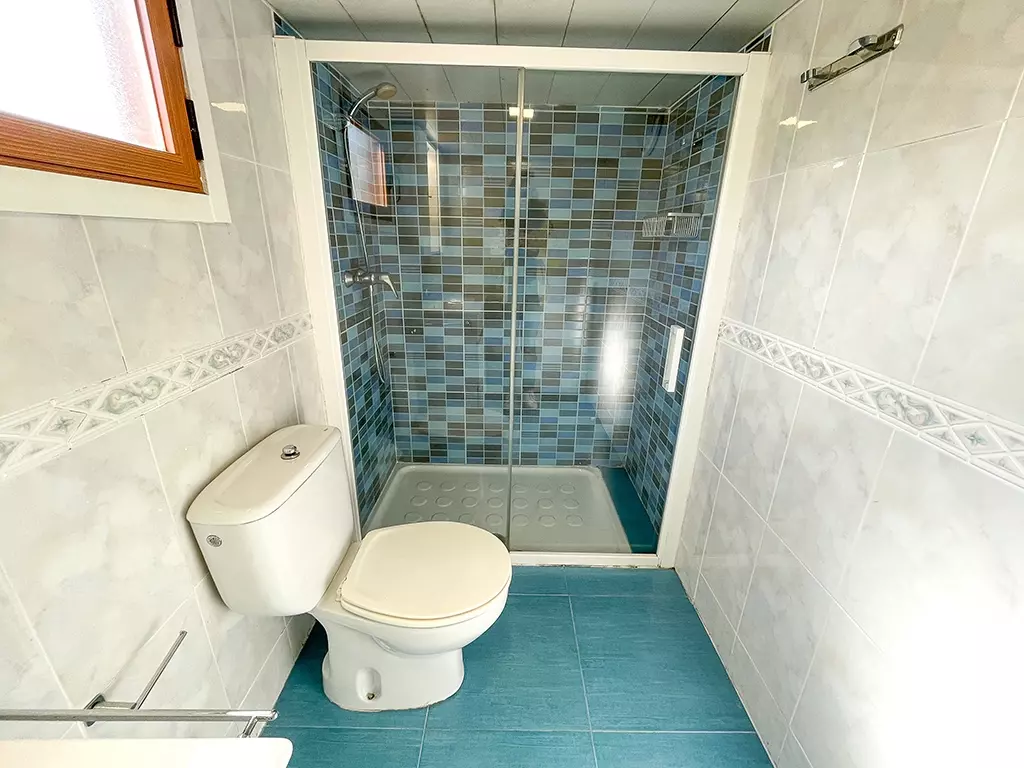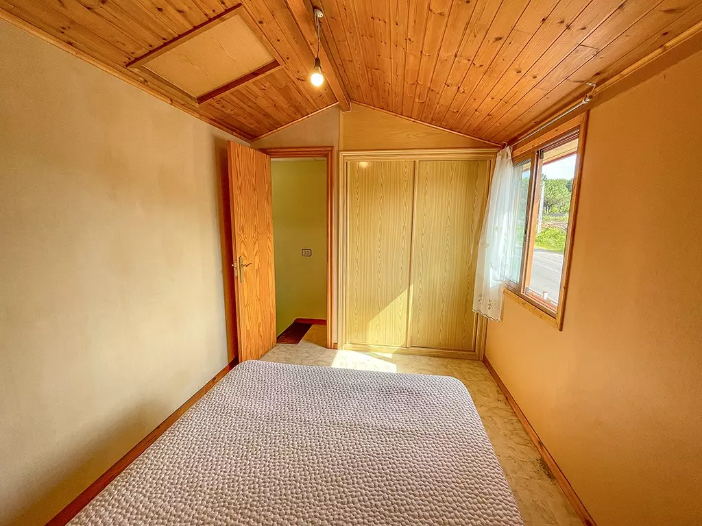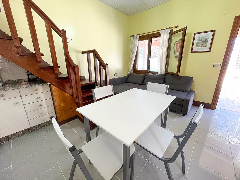Bungalow 2/4: Maximum capacity for four people. Features a bedroom with a double bed on the upper floor. Also included is a kitchen open to the living-dining room and a full bathroom with a shower.